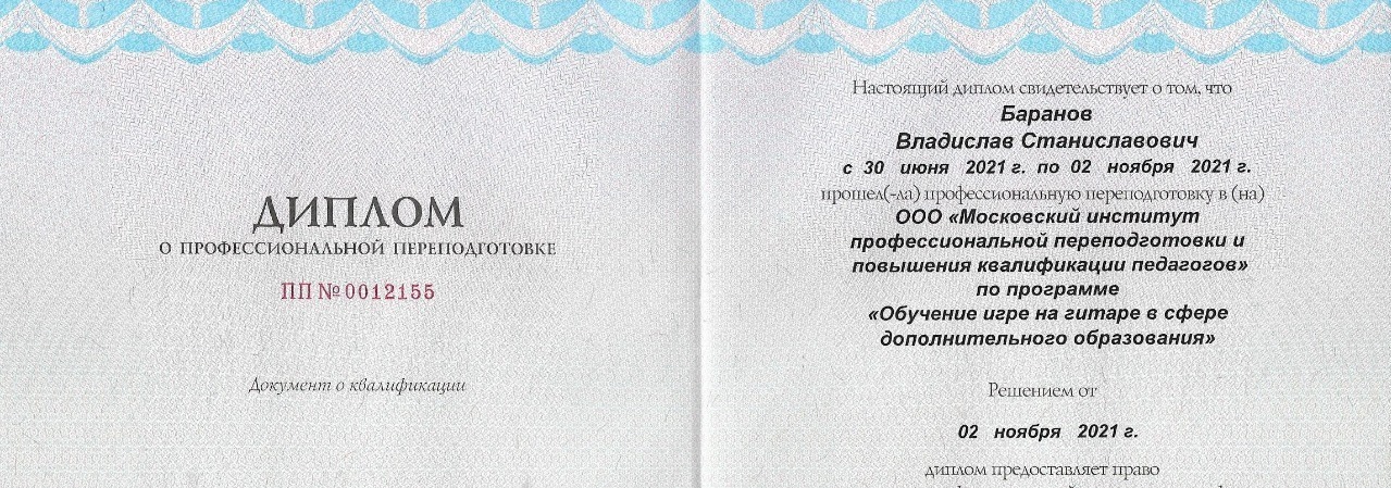 Хожу к Владиславу Станиславовичу на занятия по гитаре около 1.5 месяцев, за этот короткий срок я научился многим музыкальным произведениям. Отзывчивый преподаватель, понятно объясняет, помог выбрать гитару. ВСЕМ СОВЕТУЮ!!!!!
